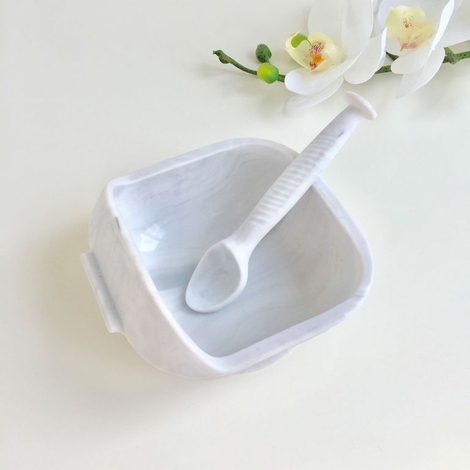 Набор силиконовая тарелочка на присоске с ложечкой Мрамор