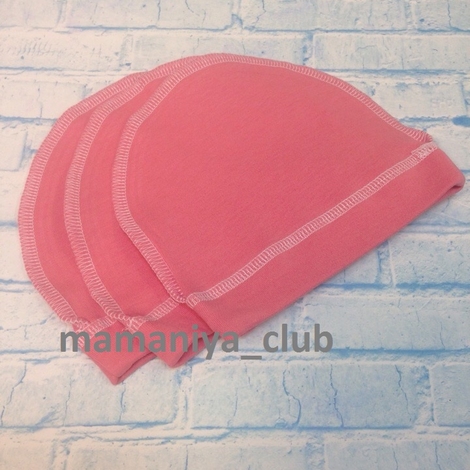 Шапочка 0-3 мес, швы наружу, коралл