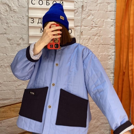Бомбер, голубой/темный джинс