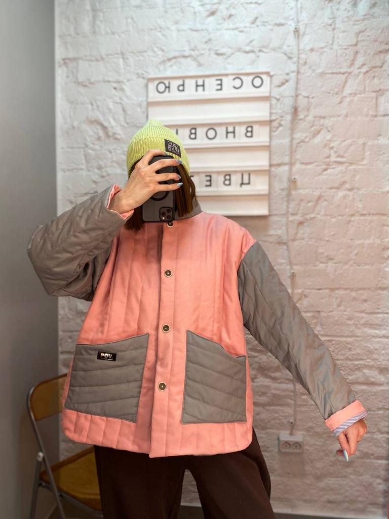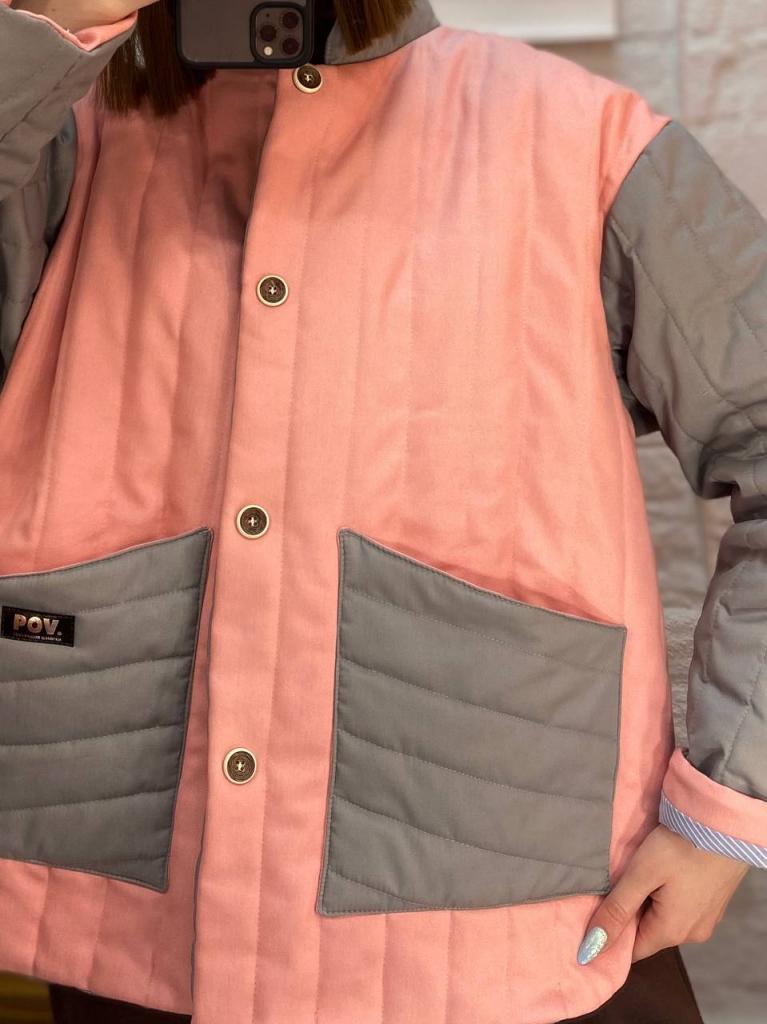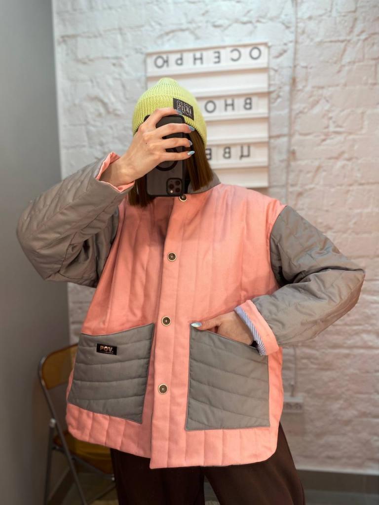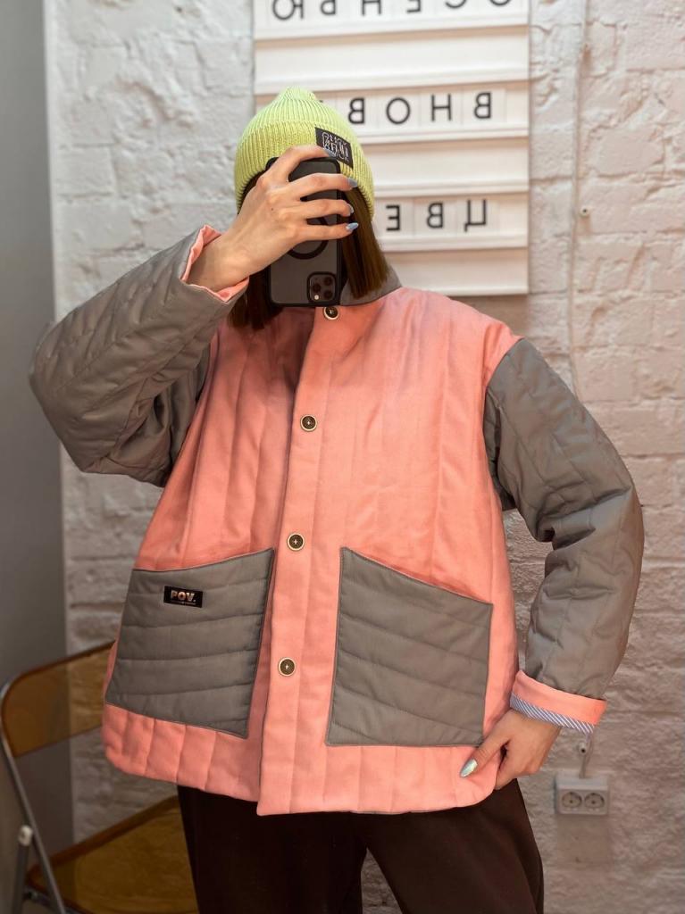 Бомбер, розовый/серый