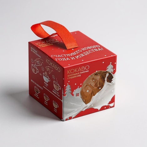 Новогодние шоколадные бомбочки на ёлку с маршмеллоу КОКАВО (1 шт), красный